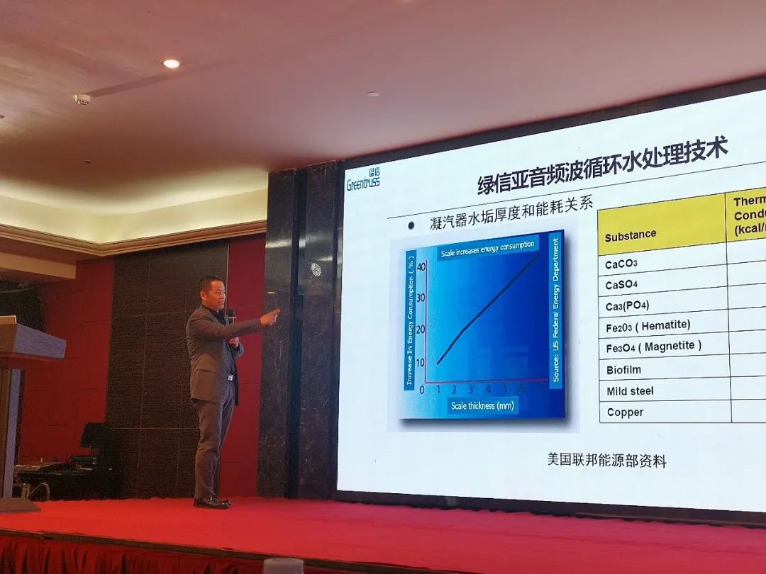 厦门绿信环保科技有限公司总经理胡良华对不同的循环冷却水处理技术的使用情况进行了对比,重点就亚音频波绿色近零处理技术、反渗透膜阻垢技术、压氧系统阻垢技术的特点及优势进行了介绍,并结合实际案例分析了亚音频波绿色近零处理技术在垃圾焚烧电厂的应用情况。