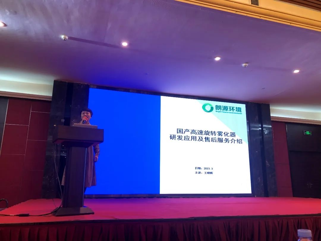 辽宁朗源环境科技有限公司销售总监王晓辉详细介绍了高速旋转雾化器的自主研发与优化情况,并对在行业的有关实践应用情况进行了分享。